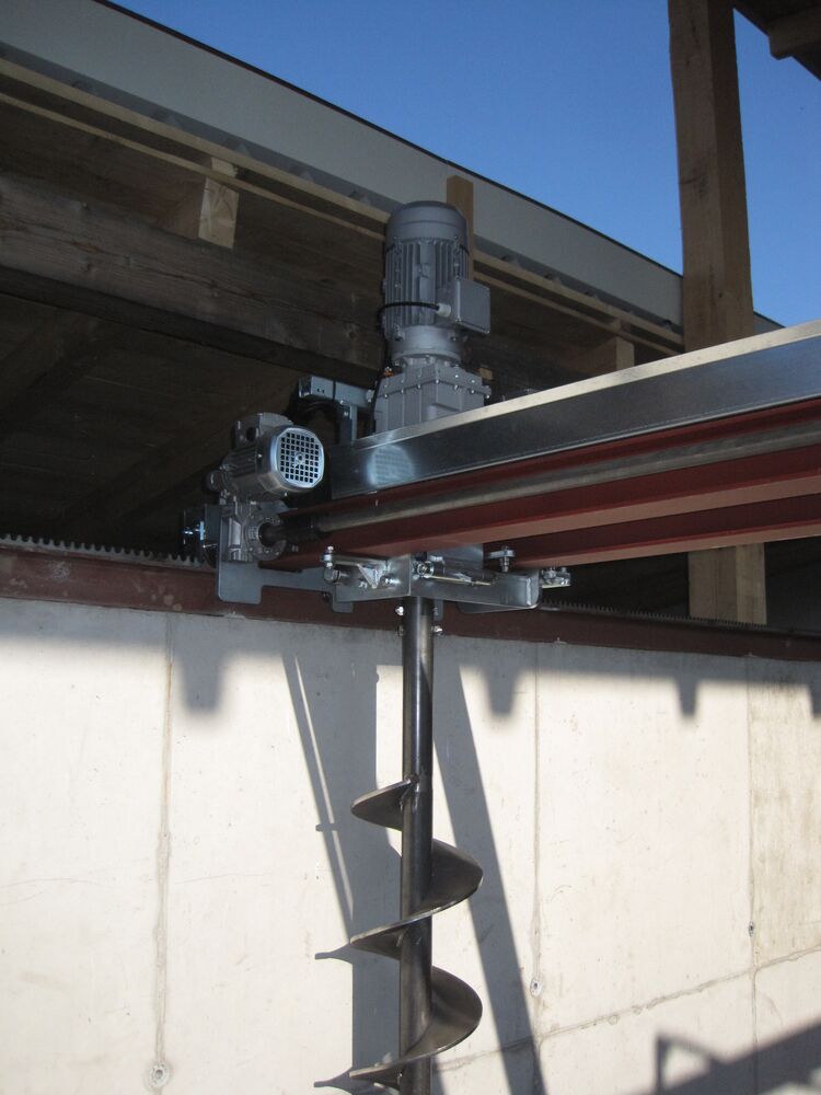 Stirring auger in different layouts, with a diameter up to 250mm, for wood chips also