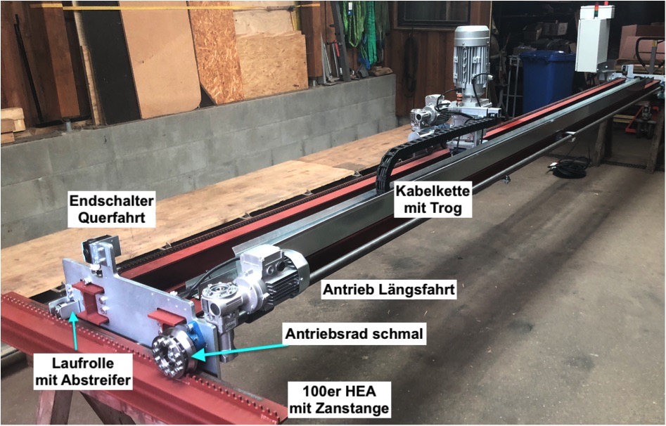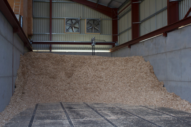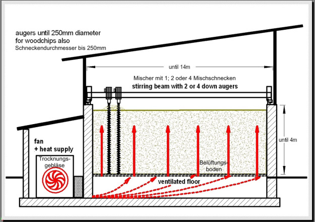 stirring beam with 3,5m lg. down augers in wood chips -