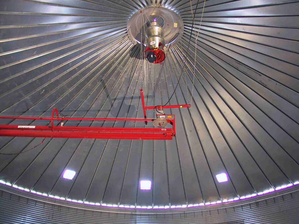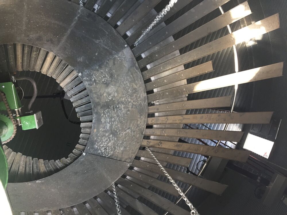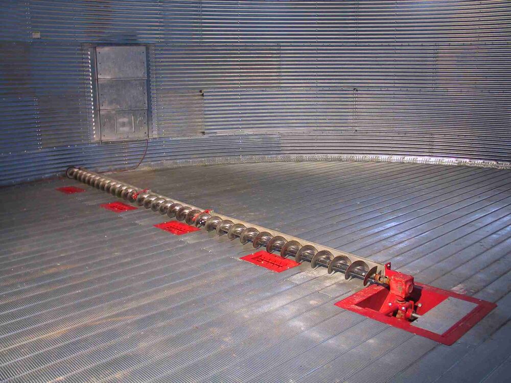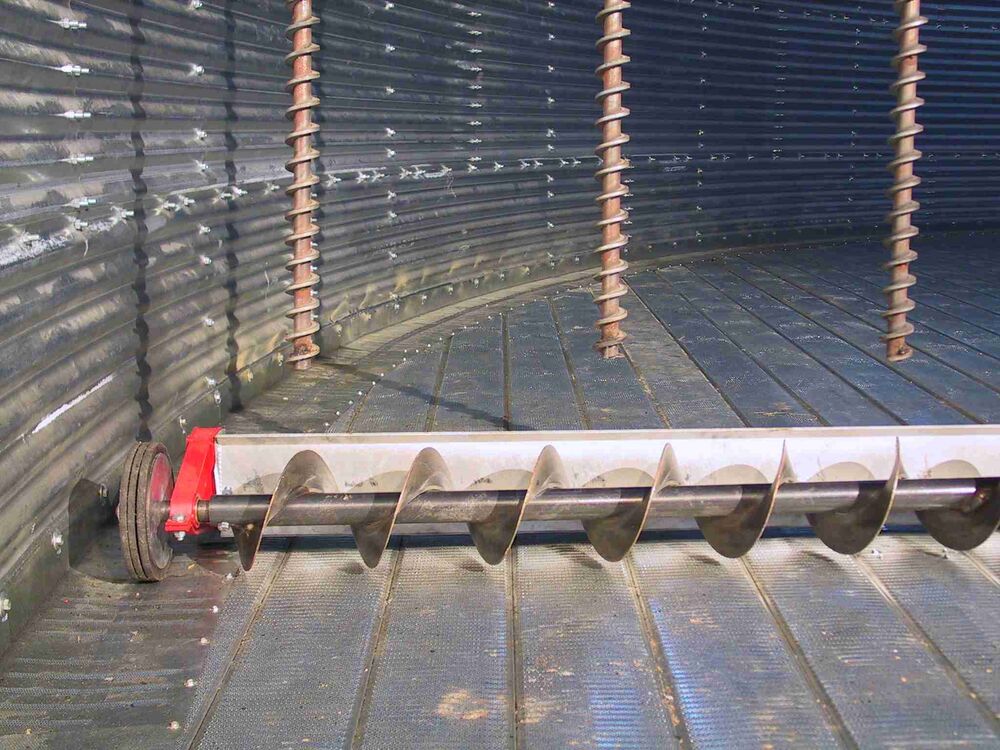All augers are located on one trolley. A indirekt rope drive (slip), combined with the circular drive forces the trolley per round roughly 1,1m to silo center or side wall. I takes several revolutions to reach once silo center……