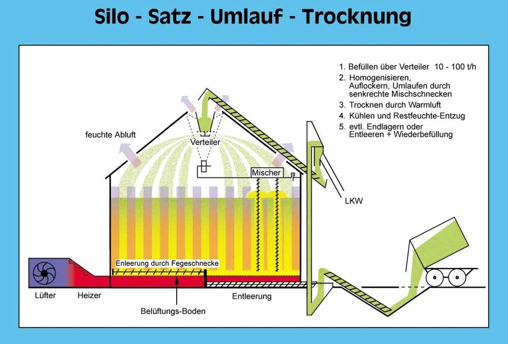 Silo set circulation dryer / at the same time wet cell; Dryer; Storage silo and transfer cell with a capacity of 100 to 1,000 t